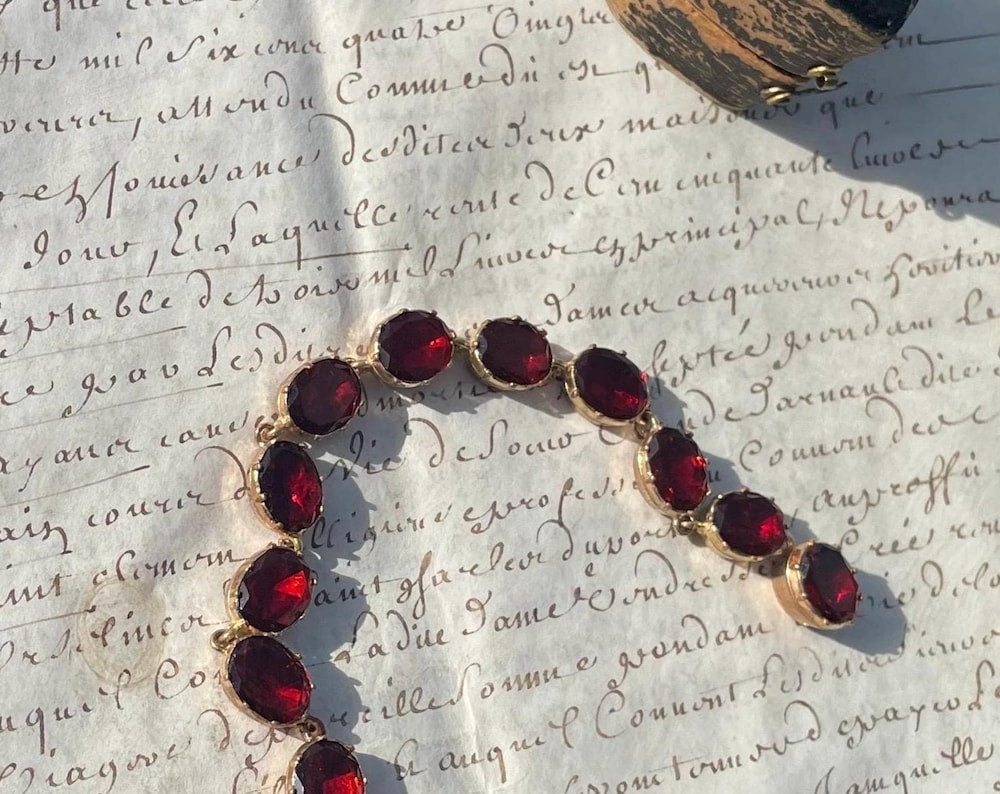 Regular price $1,825.00Sale price $1,825.00 Regular priceUnit price / perThese earrings, dating to the Georgian era, depict the classic pansy motif that was highly favored in jewelry during that time. The flat cut garnets are...