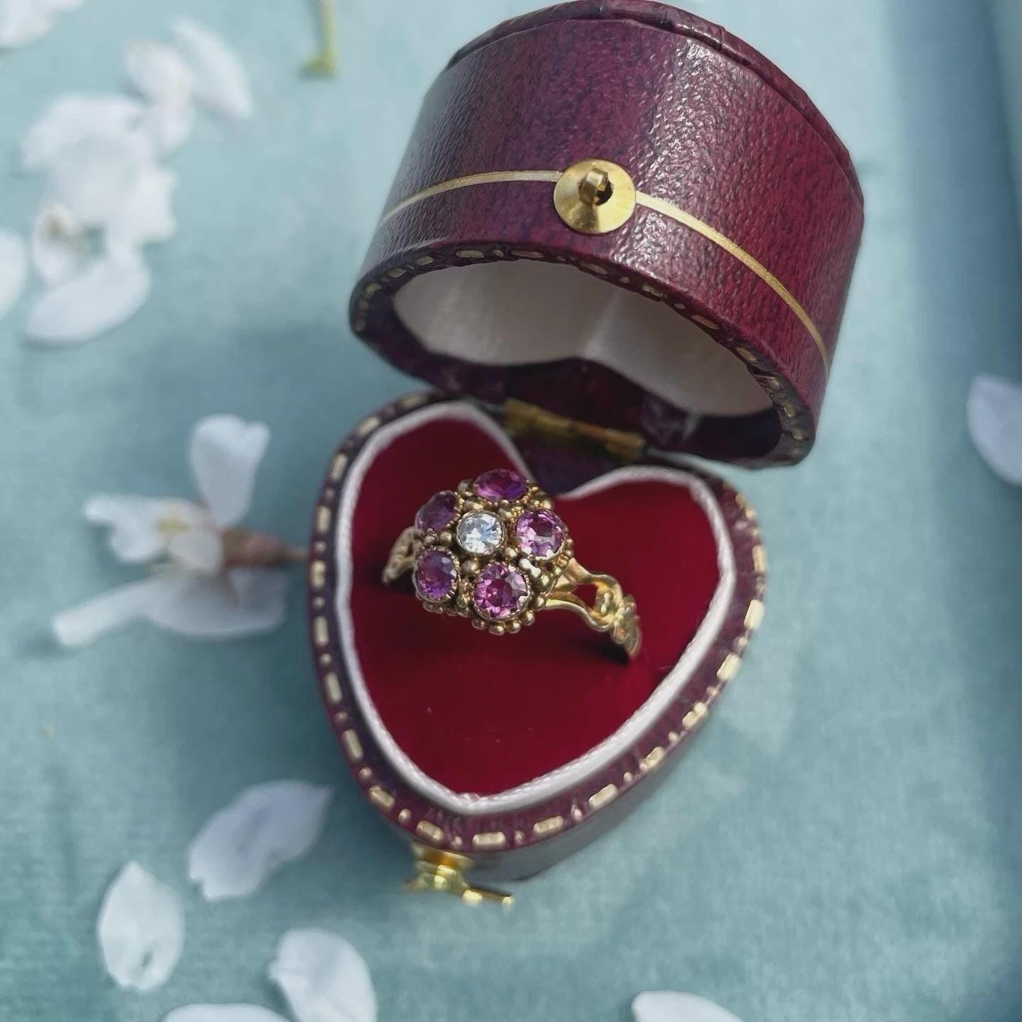 Georgian Pink Garnet Floral Ring