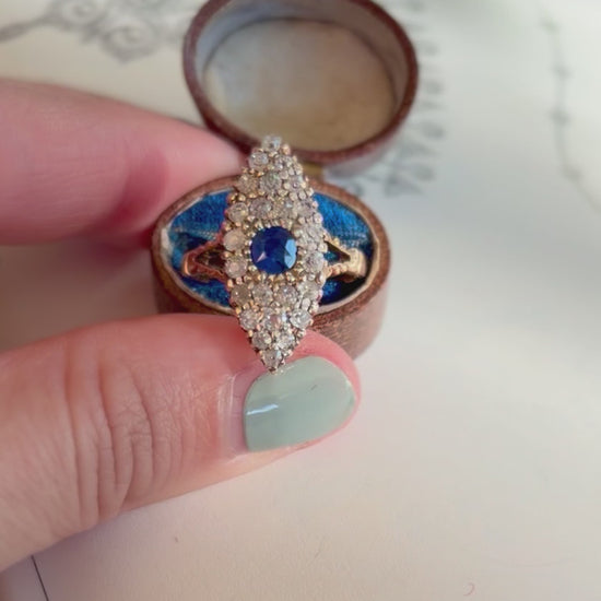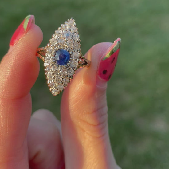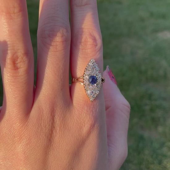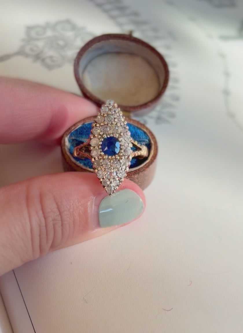 Late Victorian Sapphire & Diamond Navette Ring