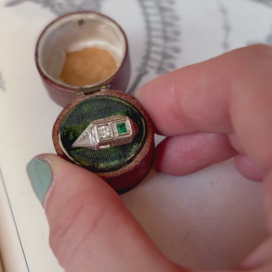 Art Deco Toi et Moi Emerald & Diamond 18k White Gold Ring