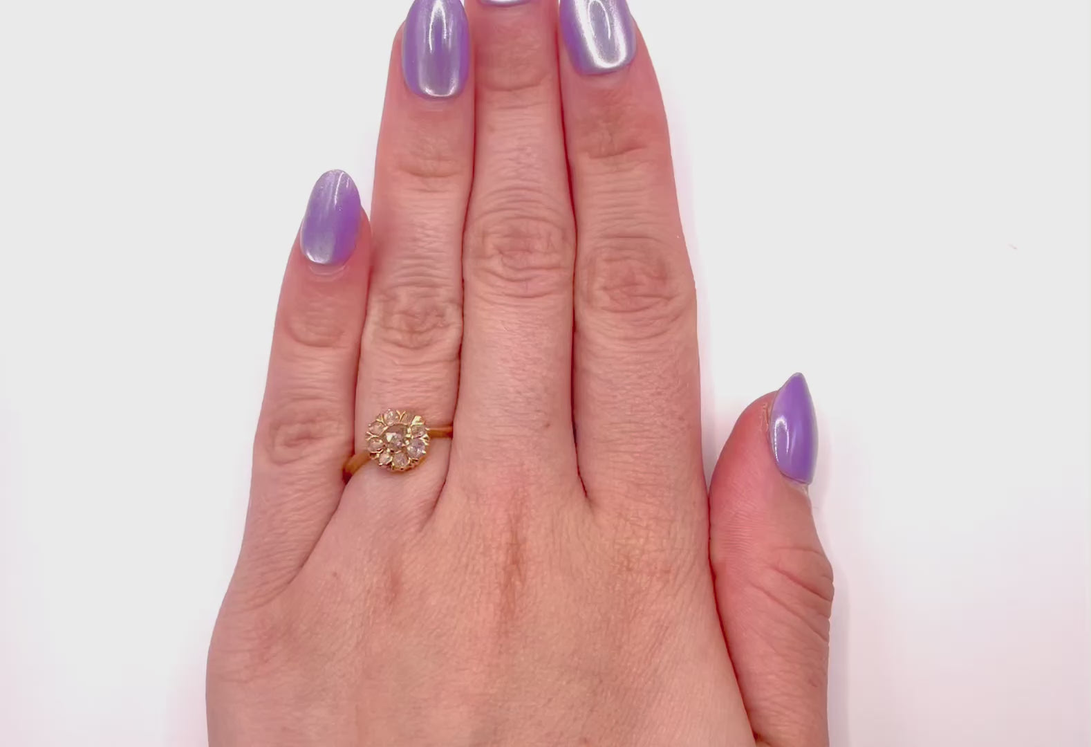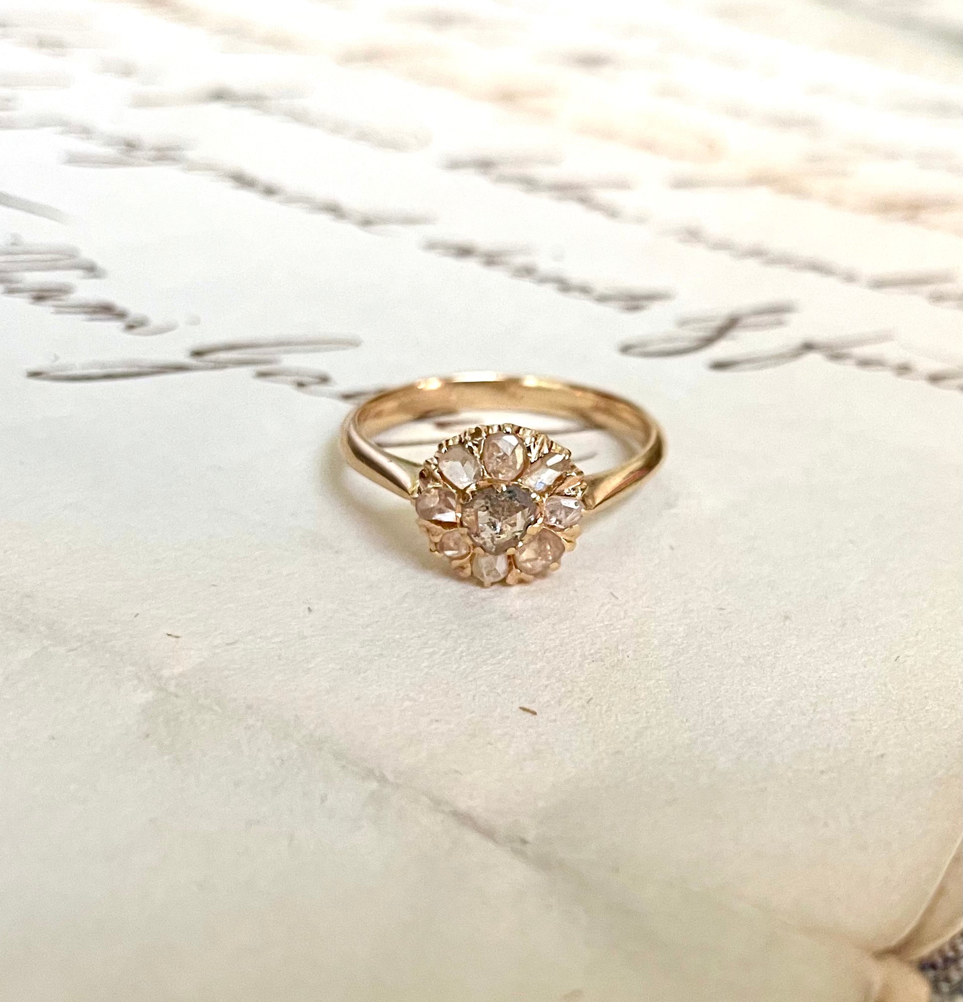 The Sunflower ~ Victorian Rose Cut Diamond Cluster Ring