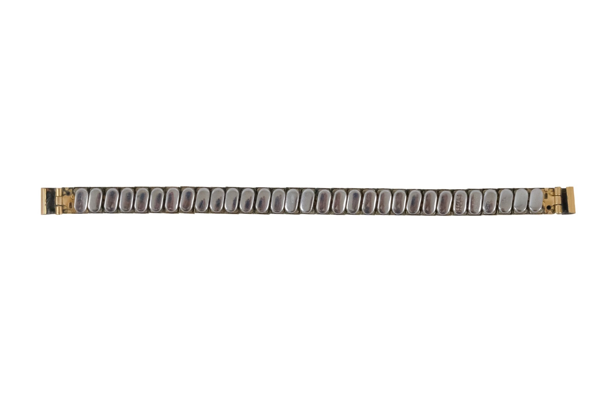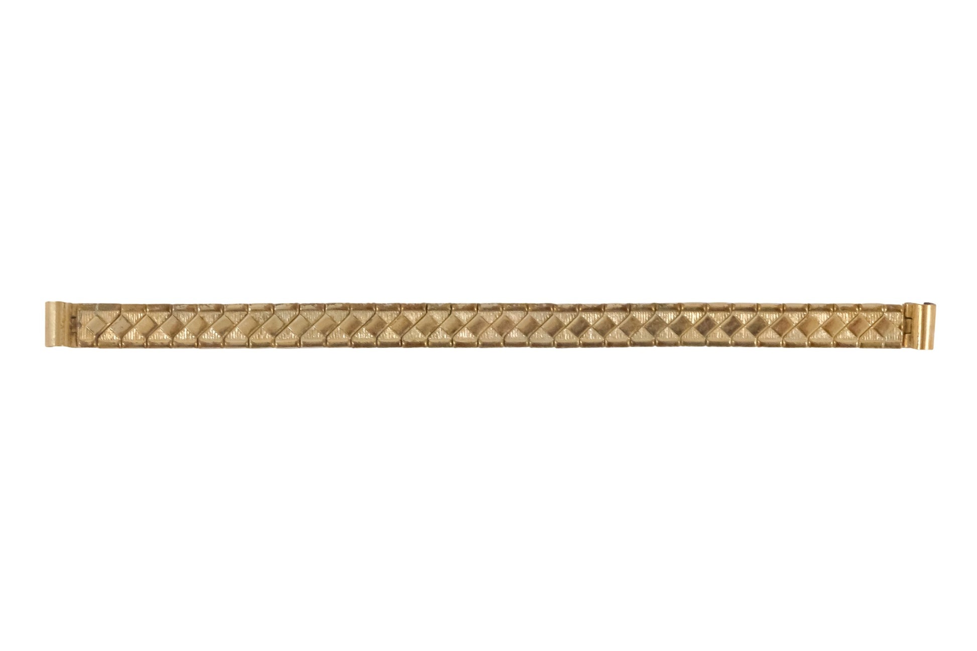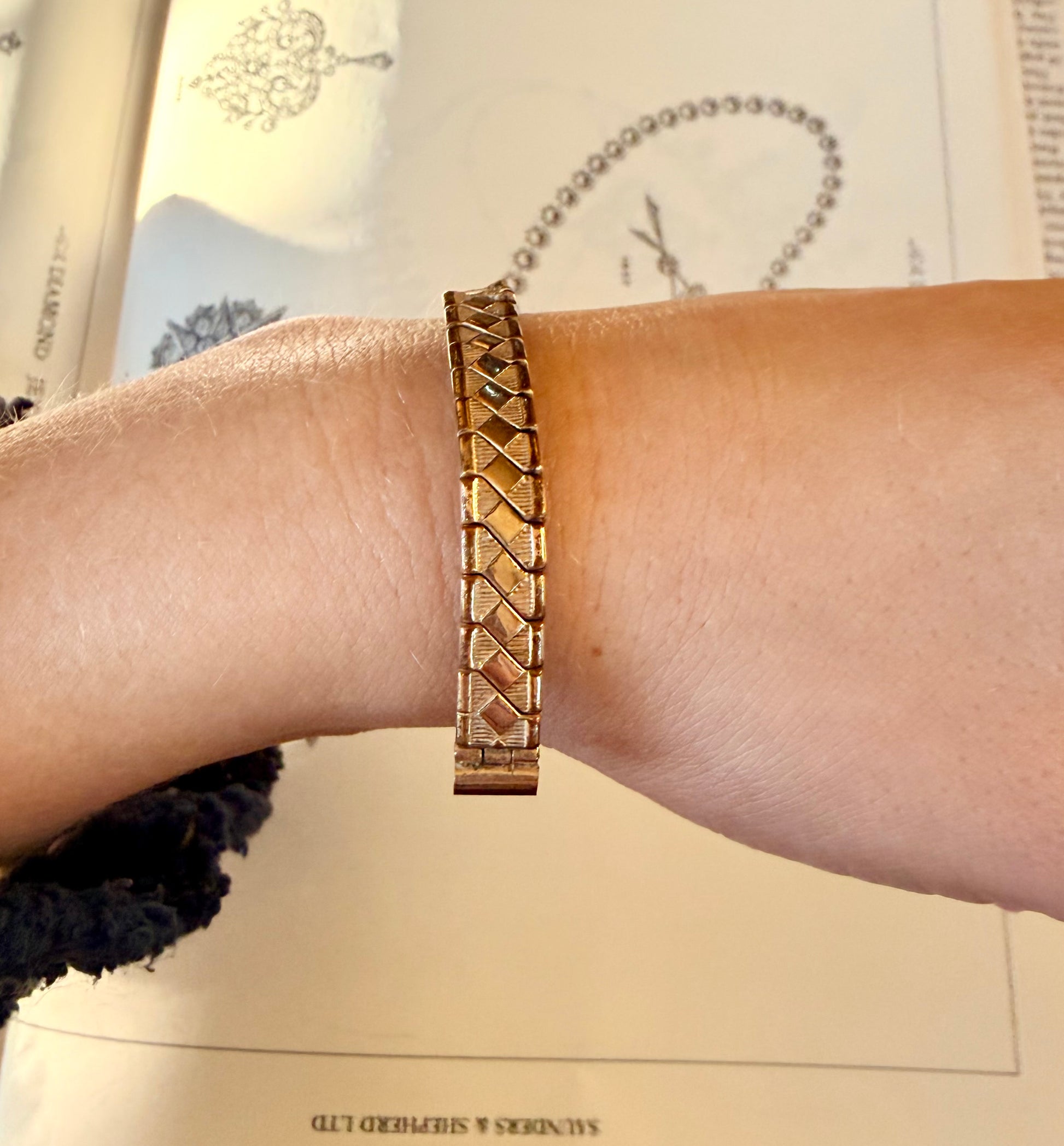 A delicate gold plated vintage watch strap, dating likely to somewhere between the 1960s-1980s, that measures 13.5cm in length but has an elasticated component that allows it to expand.