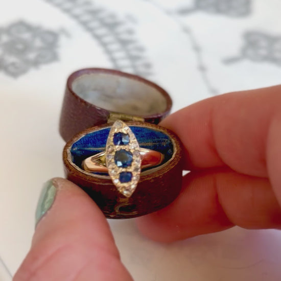 Victorian Sapphire & Diamond Marquise Navette Ring